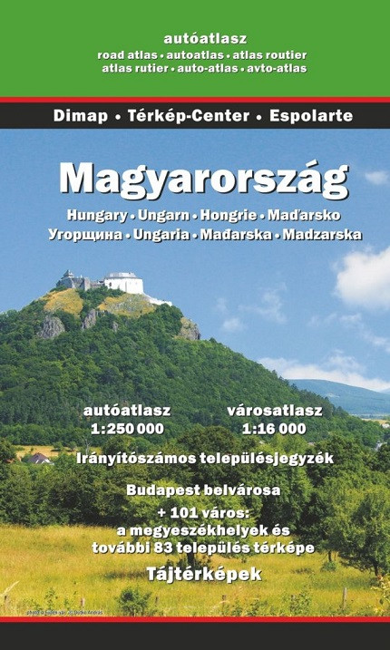 Magyarország térképe 81 oldalon, irányítószámos településjegyzékkel, 15 tájtérképpel, Budapest és még 100 város belterületi térképével.