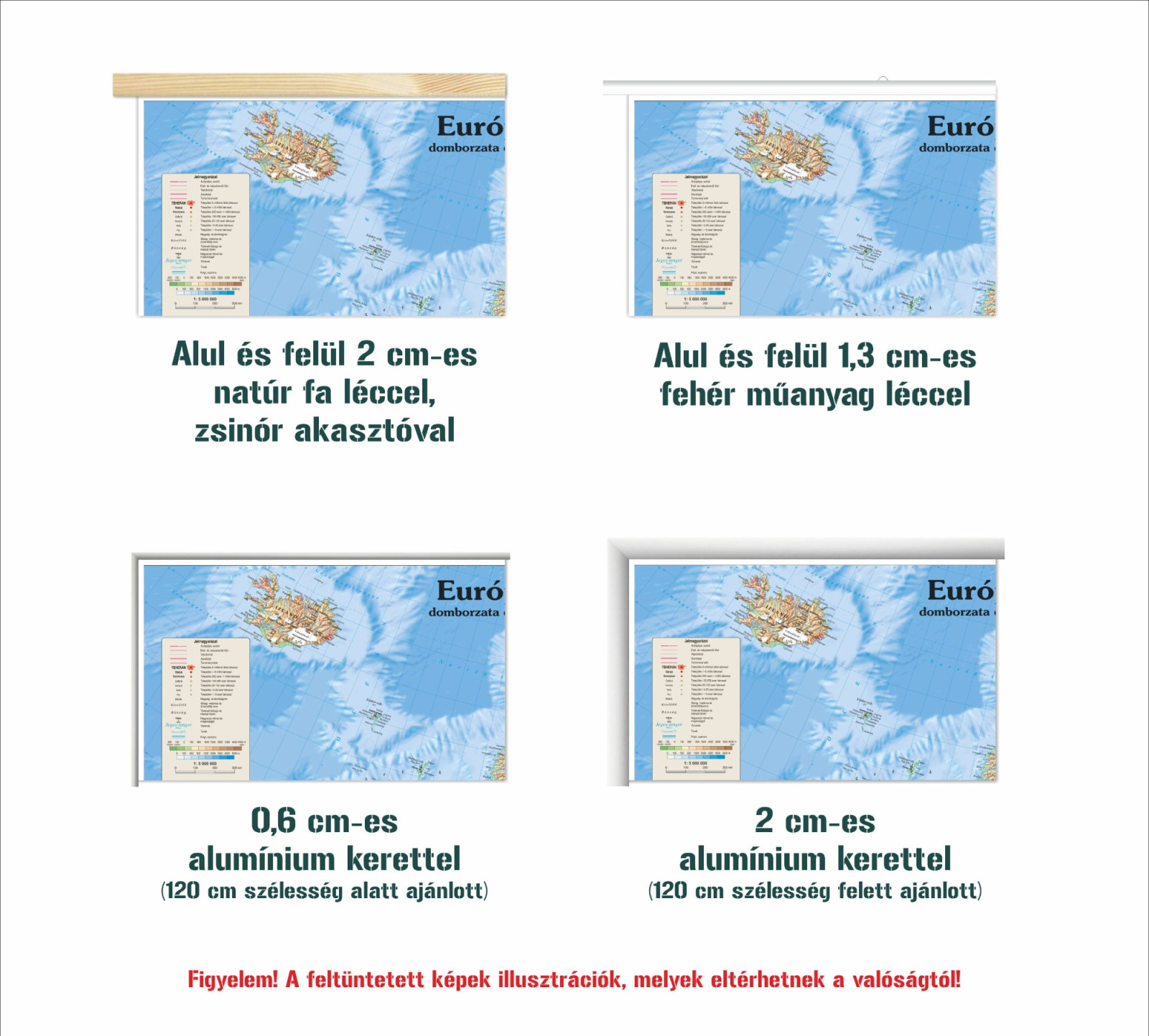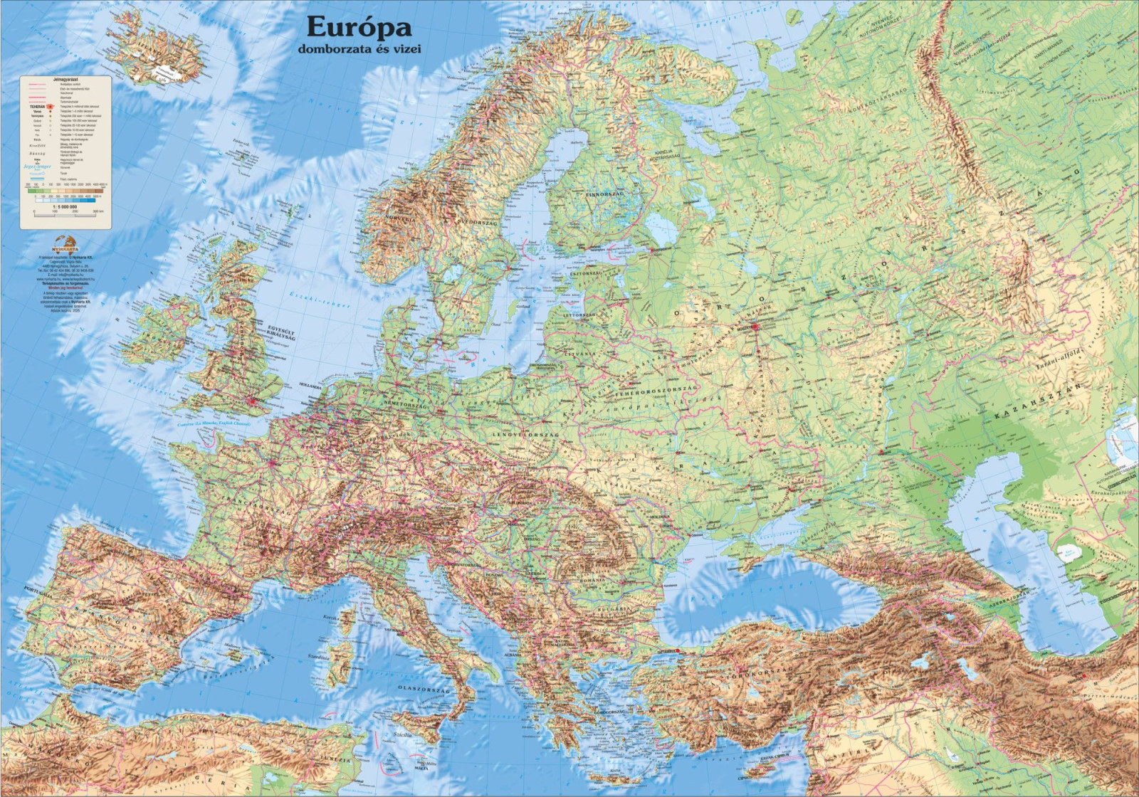 Európa domborzata és vizei falitérkép (2025) többféle méret és kivitel