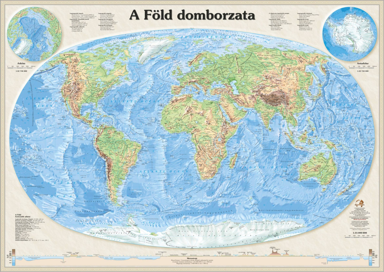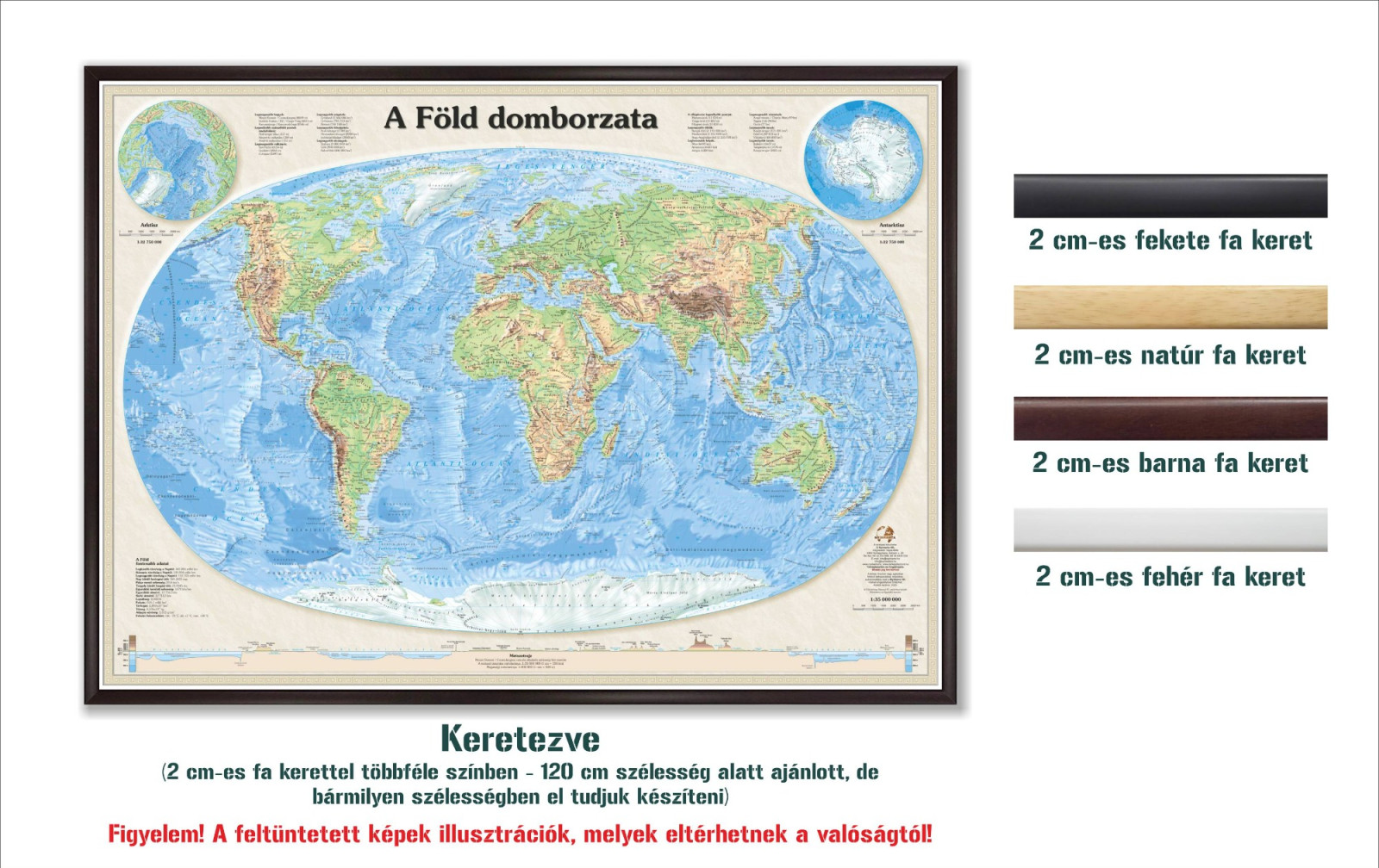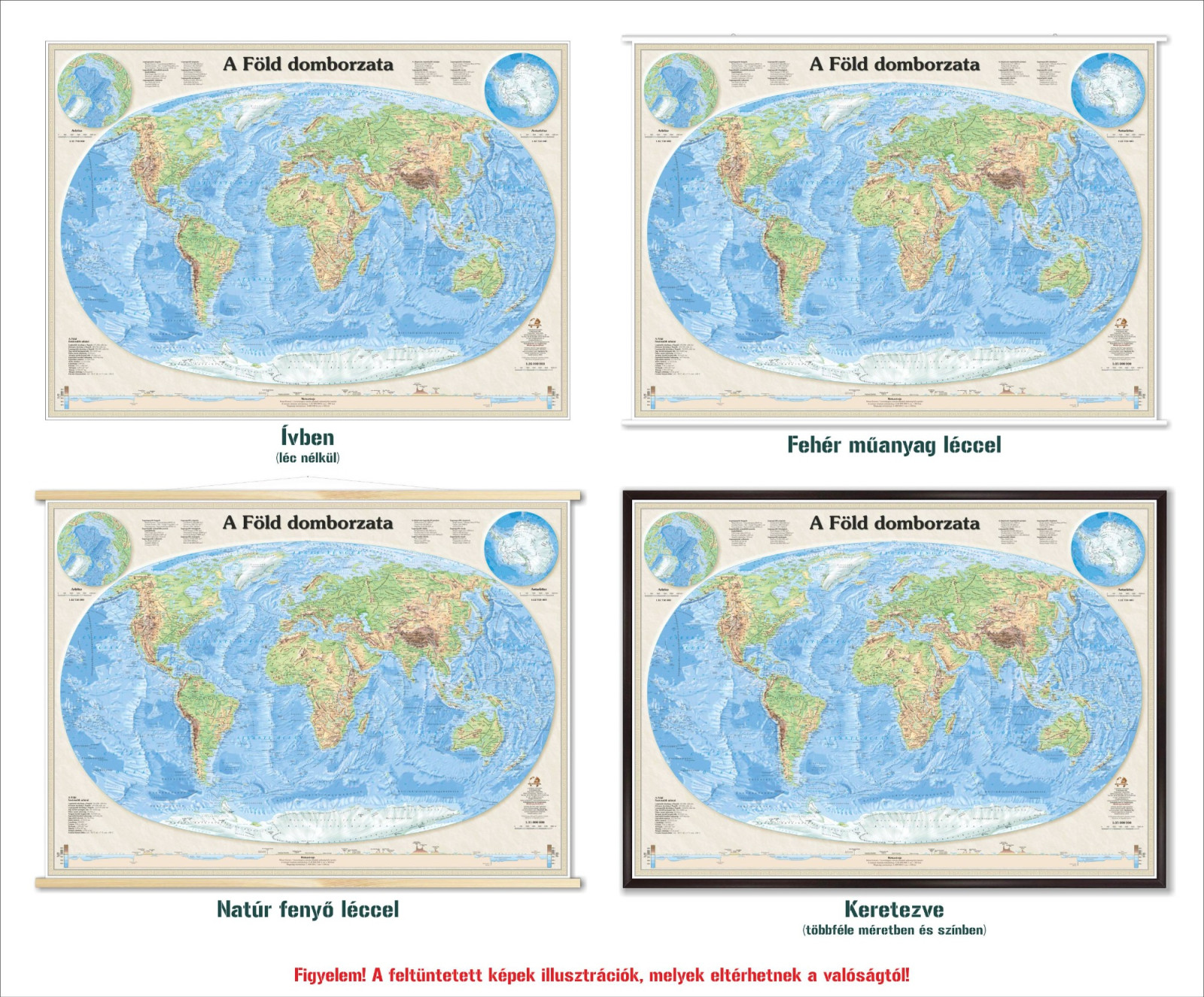 A Föld domborzata falitérkép (2025) többféle méret és kivitel